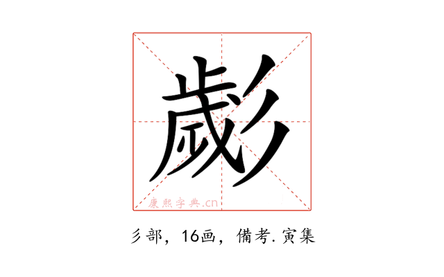 〔𢒱〕字收录于《康熙字典》備考・寅集,康熙部首是彡部。