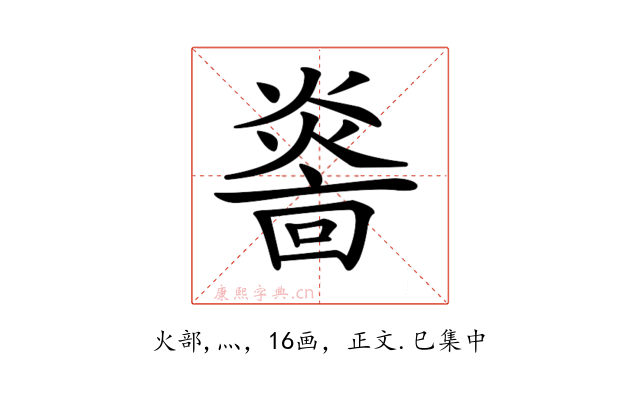 〔𤎭〕字收录于《康熙字典》正文・巳集中,康熙部首是火部。