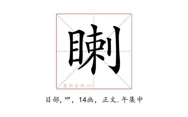 〔𥈙〕字收录于《康熙字典》正文・午集中,康熙部首是目部。