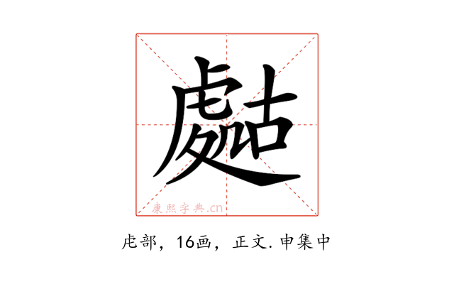 〔𧇡〕字收录于《康熙字典》正文・申集中,康熙部首是虍部。