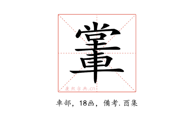 〔𨎖〕字收录于《康熙字典》備考・酉集,康熙部首是車部。