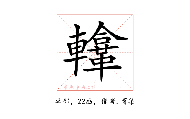 〔𨏚〕字收录于《康熙字典》備考・酉集,康熙部首是車部。