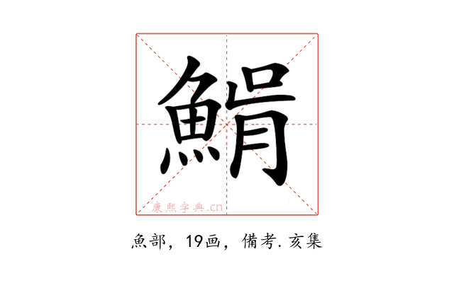 〔𩸠〕字收录于《康熙字典》備考・亥集,康熙部首是魚部。