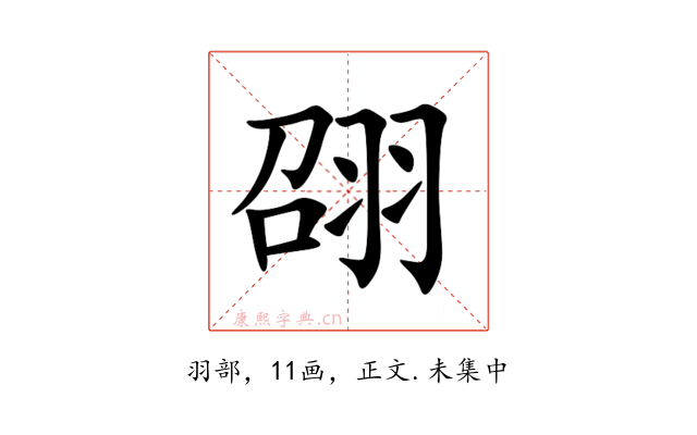 〔䎄〕字收录于《康熙字典》正文・未集中,康熙部首是羽部。