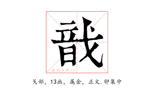 〔戠〕字收录于《康熙字典》正文・卯集中,康熙部首是戈部。