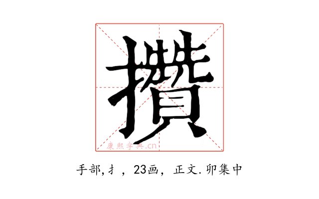 〔攢〕字收录于《康熙字典》正文・卯集中,康熙部首是手部。