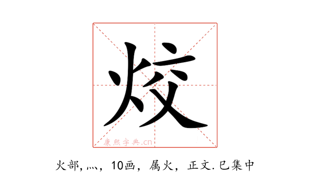 〔烄〕字收录于《康熙字典》正文・巳集中,康熙部首是火部。