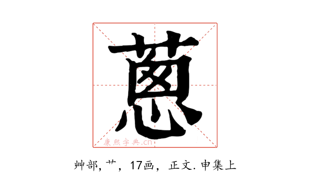 〔蔥〕字收录于《康熙字典》正文・申集上,康熙部首是艸部。