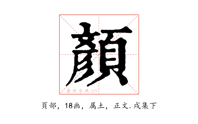 〔顏〕字收录于《康熙字典》正文・戌集下,康熙部首是頁部。