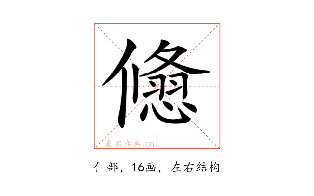 〔𠐃〕字部首是亻部,总笔画是16画。