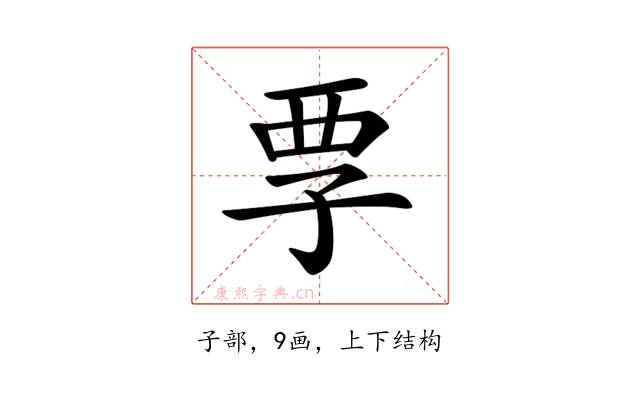 纠错〔𡥟〕字部首是子部,总笔画是9画。