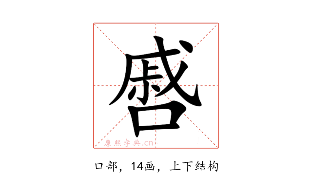 〔㗤〕字是上下结构,可拆字为“戚、口”。