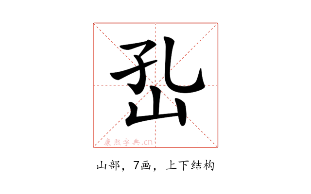 〔𡵾〕字是上下结构,可拆字为“孔、山”。