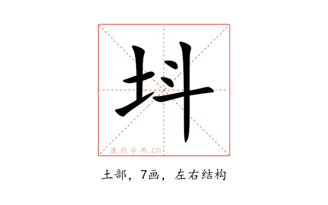〔㘰〕字是左右结构,可拆字为“土、斗”。