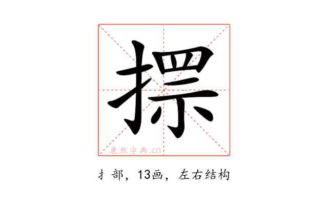 〔𢲗〕字部首是扌部,总笔画是13画。