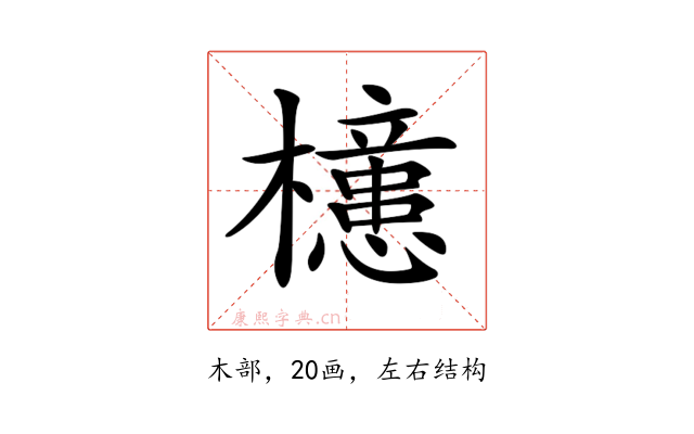 〔𣟥〕字部首是木部,总笔画是20画。