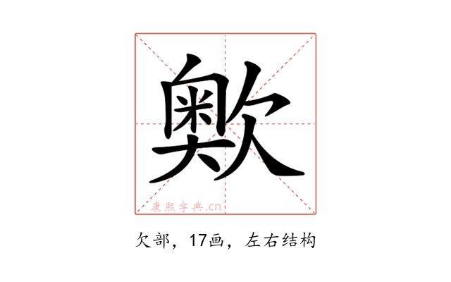 纠错〔𣤡〕字是多音字,拼音是(xiào、yǒu),部首是欠部,总笔画是17画。