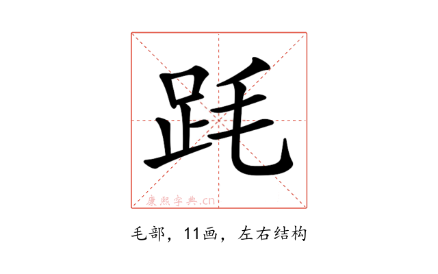 〔𣭻〕字是左右结构,可拆字为“𧾷、毛”。