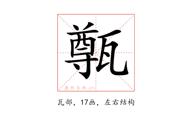 〔𤮐〕字拼音是(zūn),部首是瓦部,总笔画是17画。