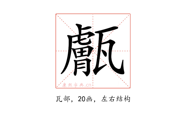 〔𤮣〕字部首是瓦部,总笔画是20画。