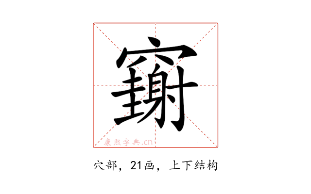 〔𥩄〕字部首是穴部,总笔画是21画。
