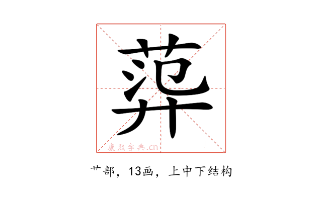 〔𦴮〕字部首是艹部,总笔画是13画。