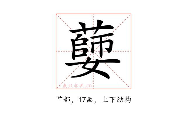 〔𦾦〕字部首是艹部,总笔画是17画。