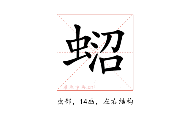 〔𧍌〕字是左右结构,可拆字为“虫、沼”。