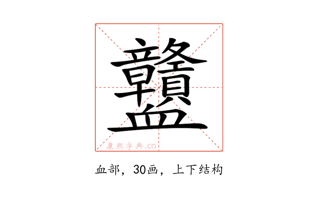 〔𧗜〕字是上下结构,可拆字为“贛、血”。