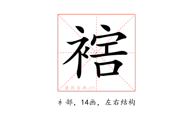 〔𧛪〕字部首是衤部,总笔画是14画。