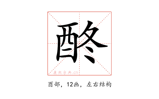 〔𨠌〕字是左右结构,可拆字为“酉、冬”。