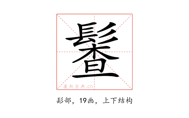 〔𩮎〕字是上下结构,可拆字为“髟、查”。