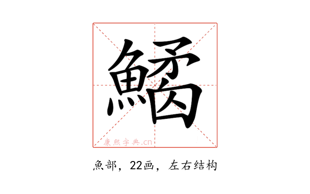 〔𩻎〕字是左右结构,可拆字为“魚、矛、丿、囚”。
