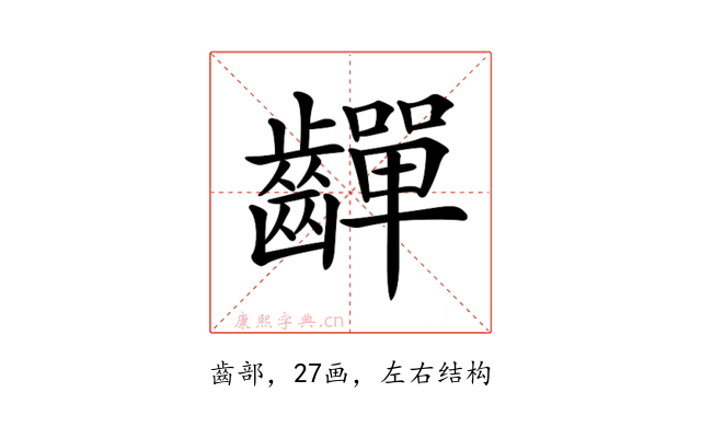 〔𪙣〕字部首是齒部,总笔画是27画。