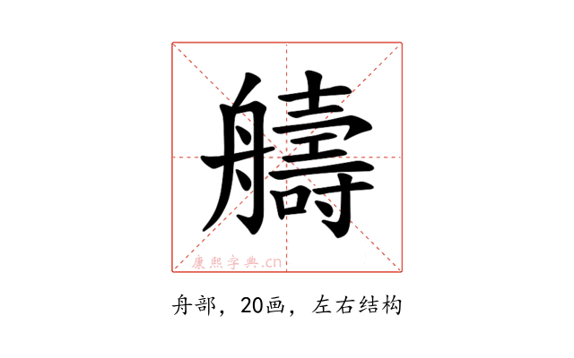 〔𫇠〕字是左右结构,可拆字为“舟、壽”。