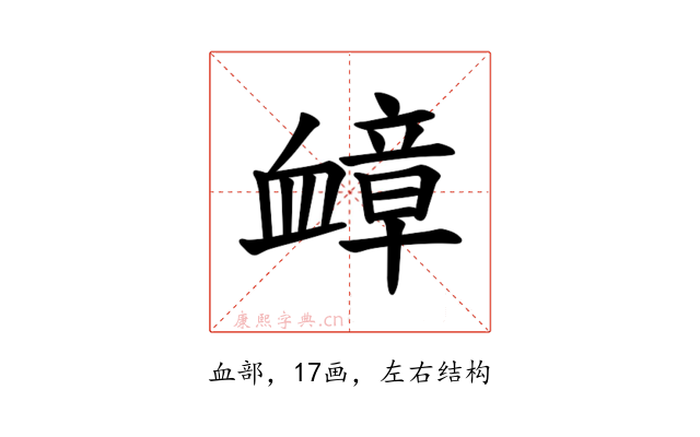 〔𫋬〕字是左右结构,可拆字为“血、章”。