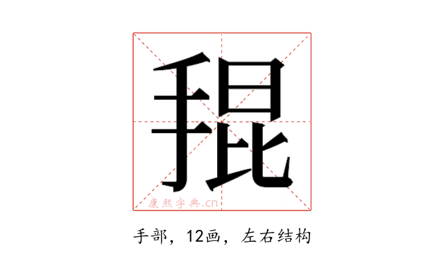 〔𭡎〕字是左右结构,可拆字为“手、昆”。