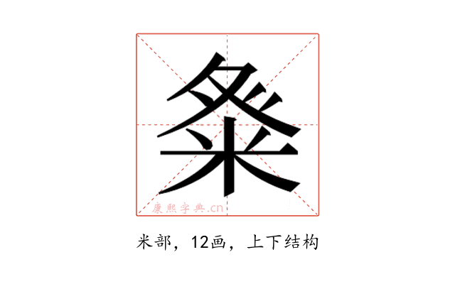 〔𮇓〕字是上下结构,可拆字为“夂、丶、𰀪、米”或“𭐝、丶、米”。