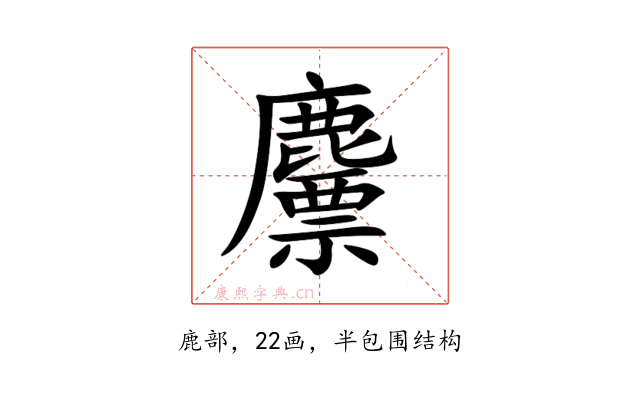 〔䴩〕字是半包围结构,可拆字为“鹿、票”。