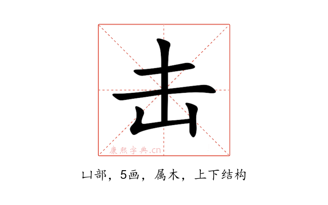 〔击〕字是上下结构,可拆字为“𰀁、凵”,五行属木。
