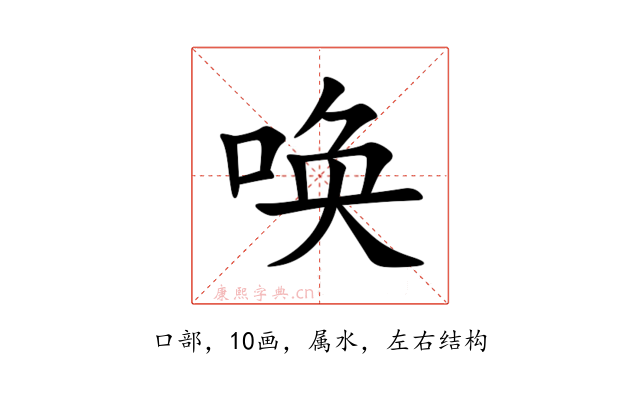 〔唤〕字是左右结构,可拆字为“口、奂”,五行属水。