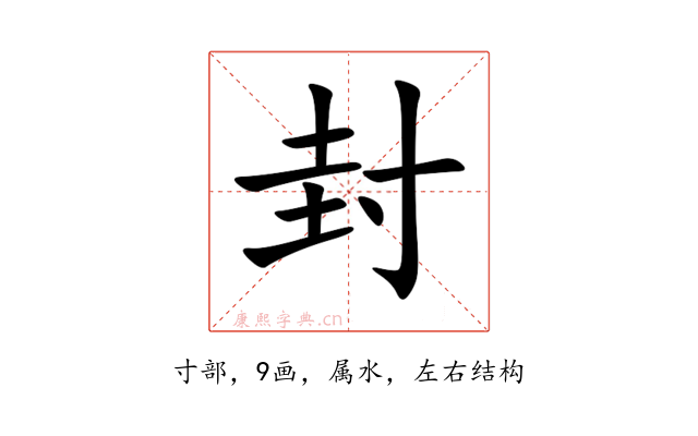 〔封〕字是左右结构,可拆字为“圭、寸”,五行属水。