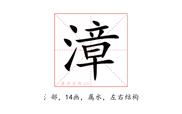 〔漳〕字是左右结构,可拆字为“氵、章”,五行属水。