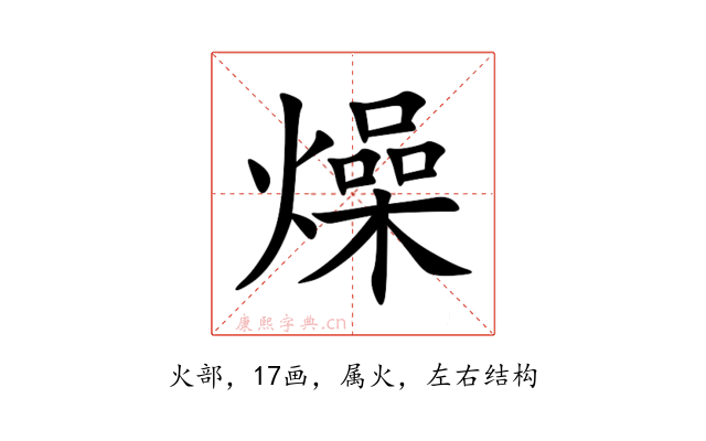 〔燥〕字是左右结构,可拆字为“火、喿”,五行属火。