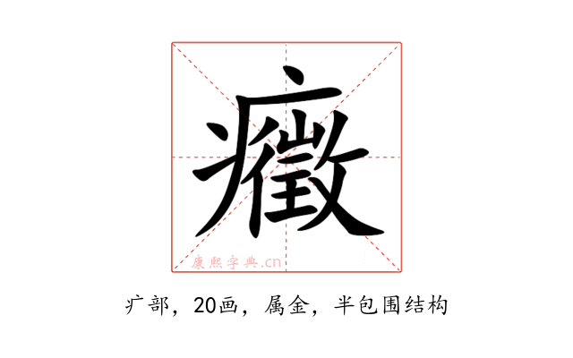 疒部 共20画 半包围结构 U+7665 CJK 基本汉字