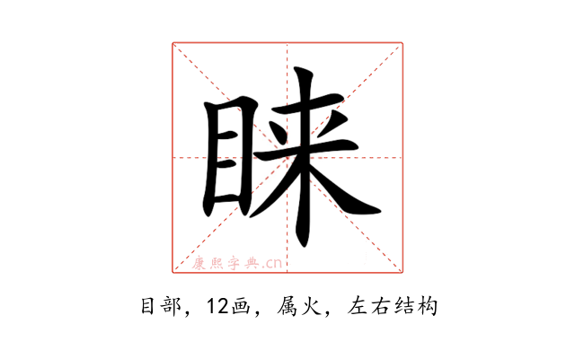 〔睐〕字是左右结构,可拆字为“目、来”,五行属火。