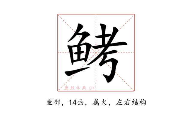 〔鲓〕字是左右结构,可拆字为“鱼、考”。