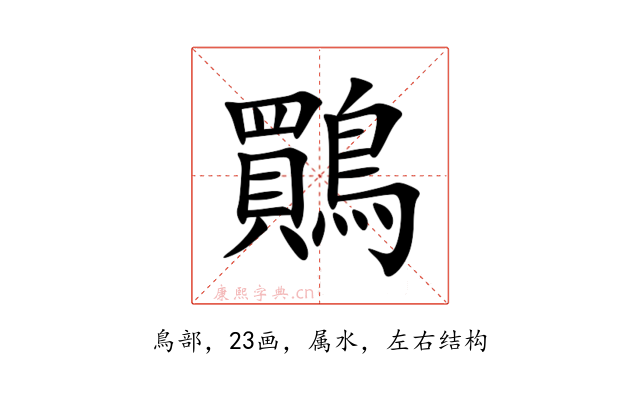 〔鷶〕字是左右结构,可拆字为“買、鳥”。