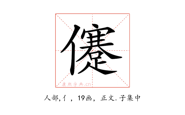 〔𠐻〕字拼音是jiǎn,左右结构,可拆字为亻、蹇。