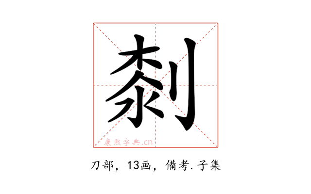 〔𠞘〕字收录于《康熙字典》備考・子集,康熙部首是刀部。
